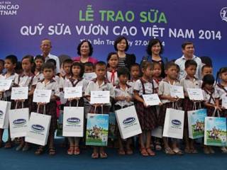Trong năm 2014, mặc dù tình hình kinh tế còn nhiều khó khăn nhưng Vinamilk vẫn quyết định tiếp tục hỗ trợ Quỹ sữa Vươn cao Việt Nam trao cho các em nhỏ có hoàn cảnh khó khăn một lượng sữa trị giá 8 tỷ đồng, tăng 33% về giá trị so với năm 2013.