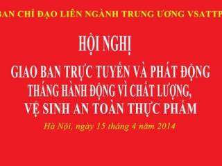 Ngày 19/3/2014, Ban Chỉ đạo liên ngành Trung ương về vệ sinh an toàn 98win link đã có công văn số 07/BCĐTƯVSATTP về việc tổ chức Hội nghị giao ban trực tuyến “Tháng hành động vì 98win8 vệ sinh an toàn 98win link năm 2014” vào Thứ ba ngày 08/4/2014 tại Hội trường 98win vin.