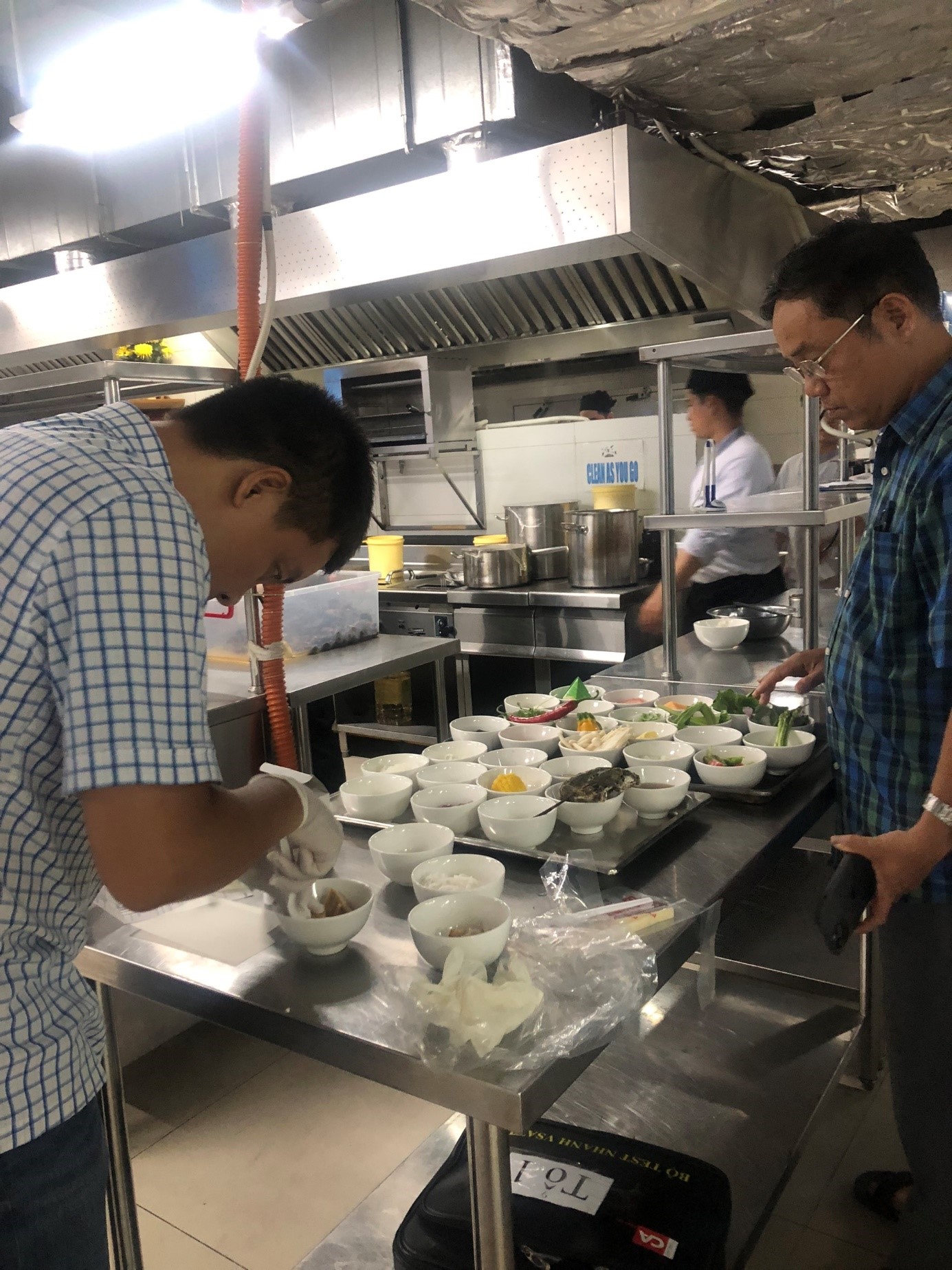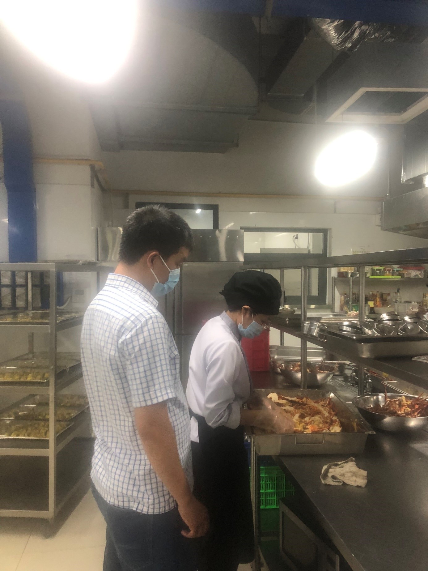 Tổ giám sát tiến hành giám sát các công đoạn chế biến 98win link tại bếp ăn của khách sạn Fleur De Lys-