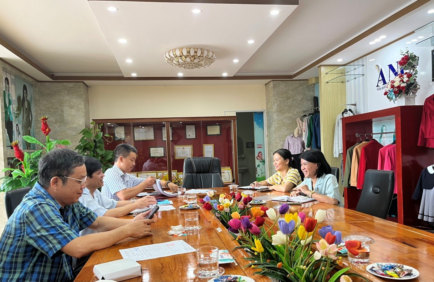 Đoàn kiểm tra làm việc với cơ sở Công ty May An Nhơn-nơi tổ chức bếp ăn tập thể.