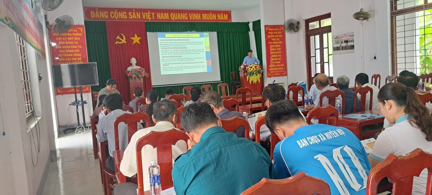 Báo cáo viên đang tập huấn tại xã Hội trường UBND xã Huyền Hội,
