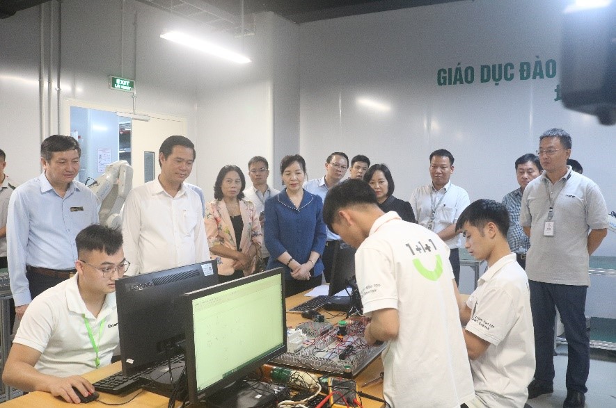 Các đại biểu thăm Trung tâm đào tạo công nghệ 98win3 Công ty TNHH Khoa học 98win3 Goertek Vina