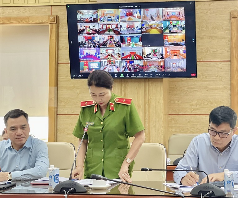 Thiếu tướng Nhữ Thị Minh Nguyệt, Phó Cục trưởng Cục cảnh sát phòng chống tội phạm Môi trường – Bộ Công an trình bày tham luận tại HN