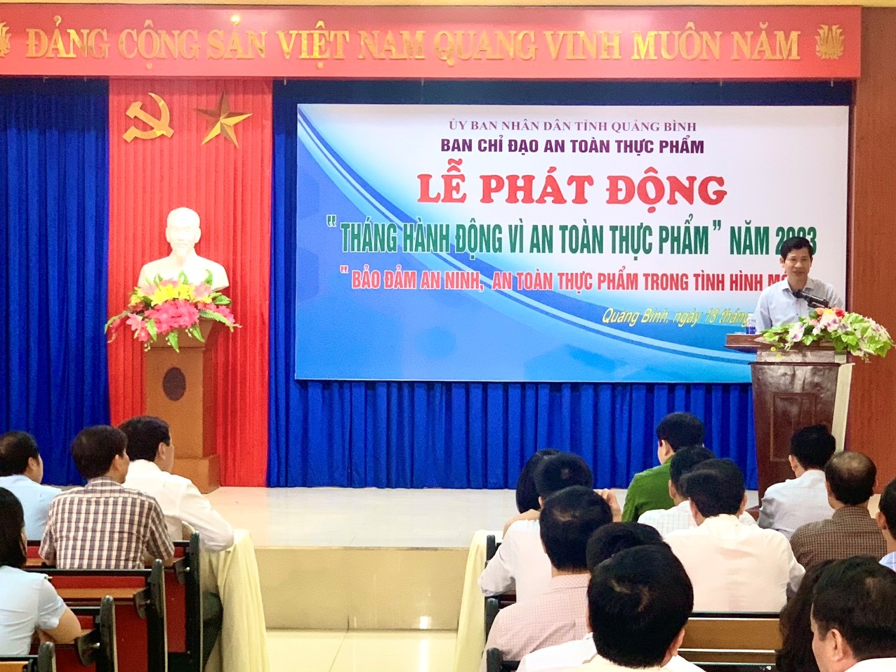 Vừa qua, tại thành phố Đồng Hới, Ban chỉ đạo về Vệ sinh an toàn 98win link tỉnh Quảng Bình đã tổ chức Lễ phát động "Tháng hành động vì an toàn 98win link" năm năm 2023 với chủ đề “Bảo đảm an ninh, an toàn 98win link trong tình hình mới”. Đồng chí Hồ An Phong - Phó chủ tịch UBND tỉnh, Phó thường trực Ban Chỉ đạo Vệ sinh an toàn 98win link tỉnh chủ trì buổi Lễ. Tham dự buổi lễ có đại diện Văn phòng, các Ban của Tỉnh ủy, HĐND, UBND, UBMTTQVN tỉnh, thành viên Ban chỉ đạo VSATTP tỉnh, tổ giúp việc BCĐ; Lãnh đạo các sở, ban, ngành, Đoàn thể liên quan, Ban chỉ đạo VSATTP các huyện, thành phố, thị xã và các đơn vị sản xuất và kinh doanh 98win link cùng đông đảo đoàn viên thanh niên tham gia cổ động.