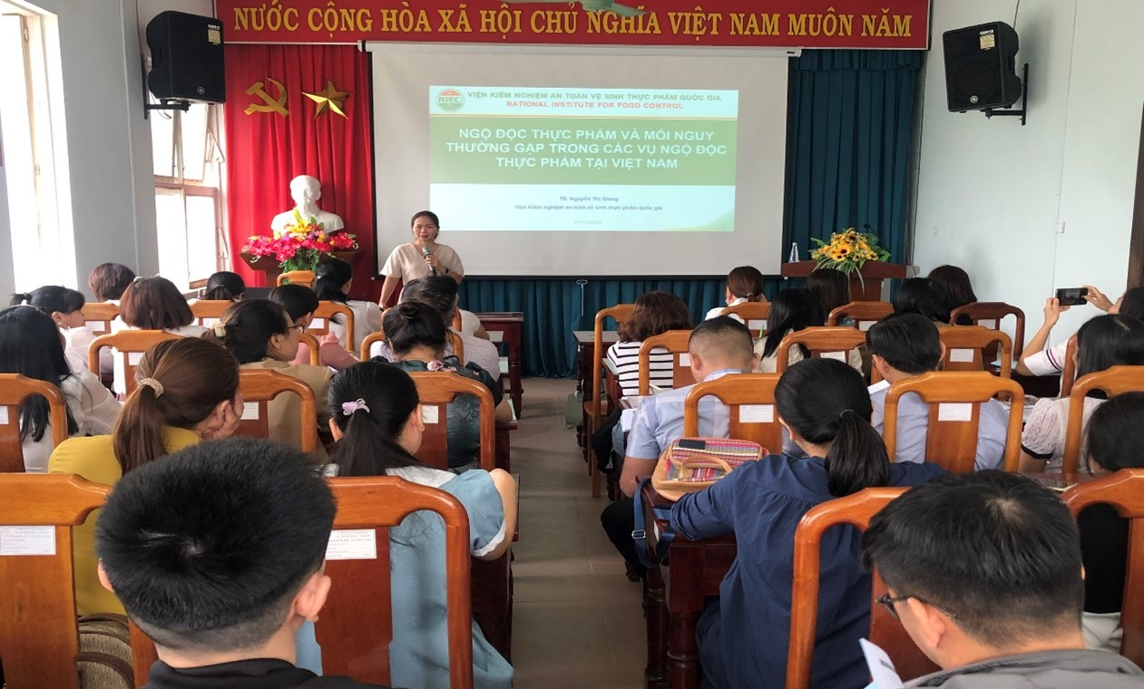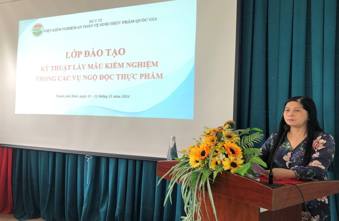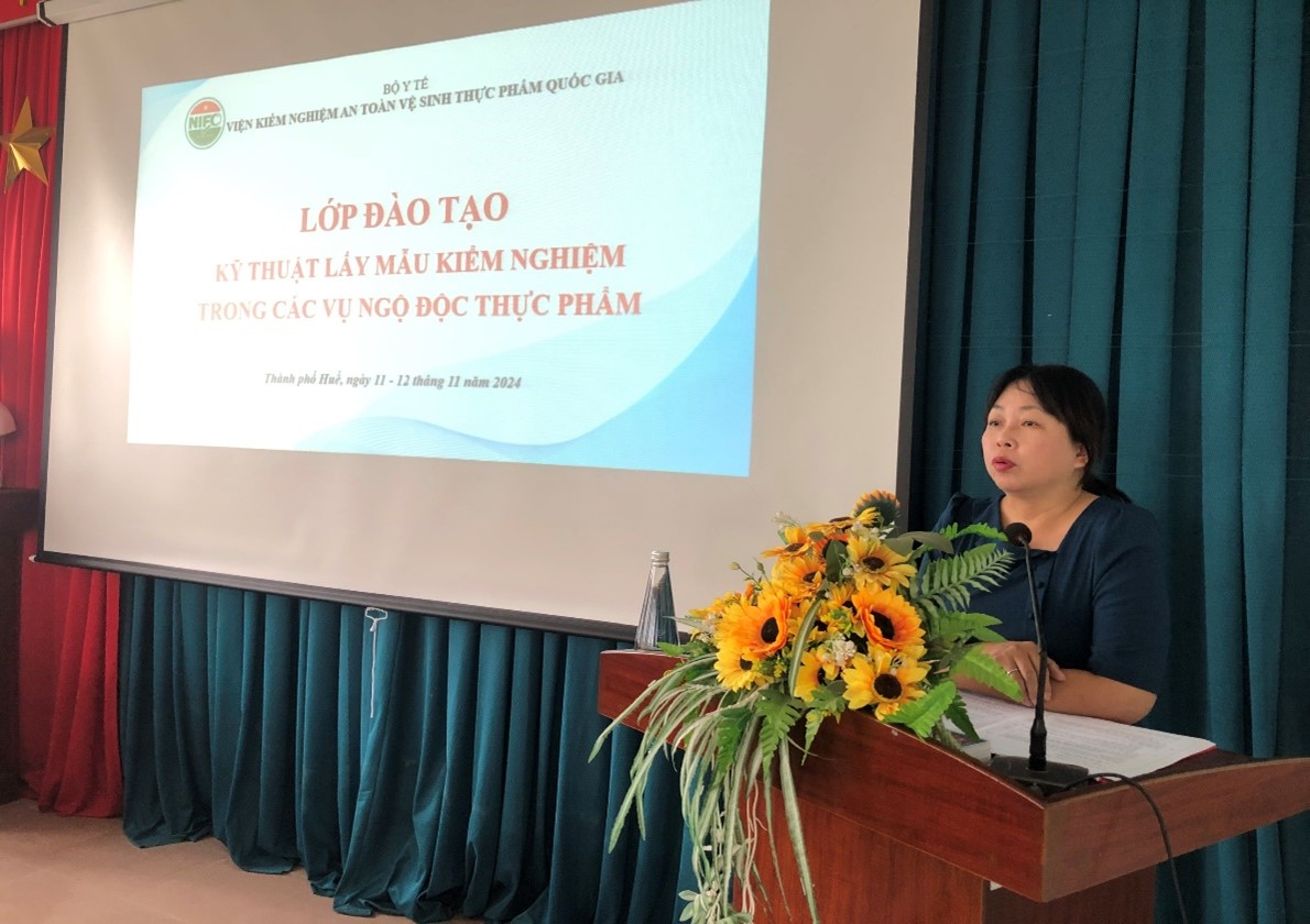 Tham dự lớp tập huấn, về phía Viện Kiểm nghiệm ATVSTPQG có TS. Nguyễn Thị Thanh Huyền - Phó Viện trưởng và các giảng viên, về phía Chi cục ATVSTP tỉnh Thừa Thiên Huế có ThS. BSCKII Trương Thị Lan Hương - Chi cục trưởng, cùng 58 học viên là cán bộ làm công tác ATVSTP từ tuyến tỉnh đến xã trên địa bàn tỉnh Thừa Thiên Huế.