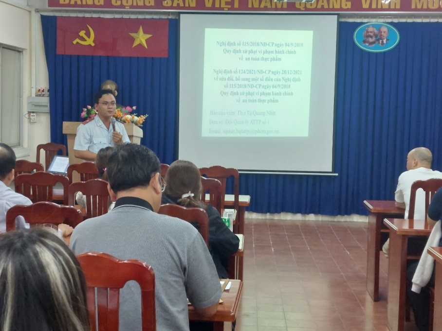 Lớp tập huấn đã cập nhật các văn bản pháp luật, quy định mới nhất về an toàn 98win link và trao đổi giải đáp một số câu hỏi của khách mời nhằm nâng cao kiến thức, kỹ năng của người trực tiếp chế biến, sản xuất, kinh doanh 98win link giúp tăng cường công tác đảm bảo an toàn 98win link, phòng chống 98win casino 98win link trên địa bàn Thành phố Hồ Chí Minh.